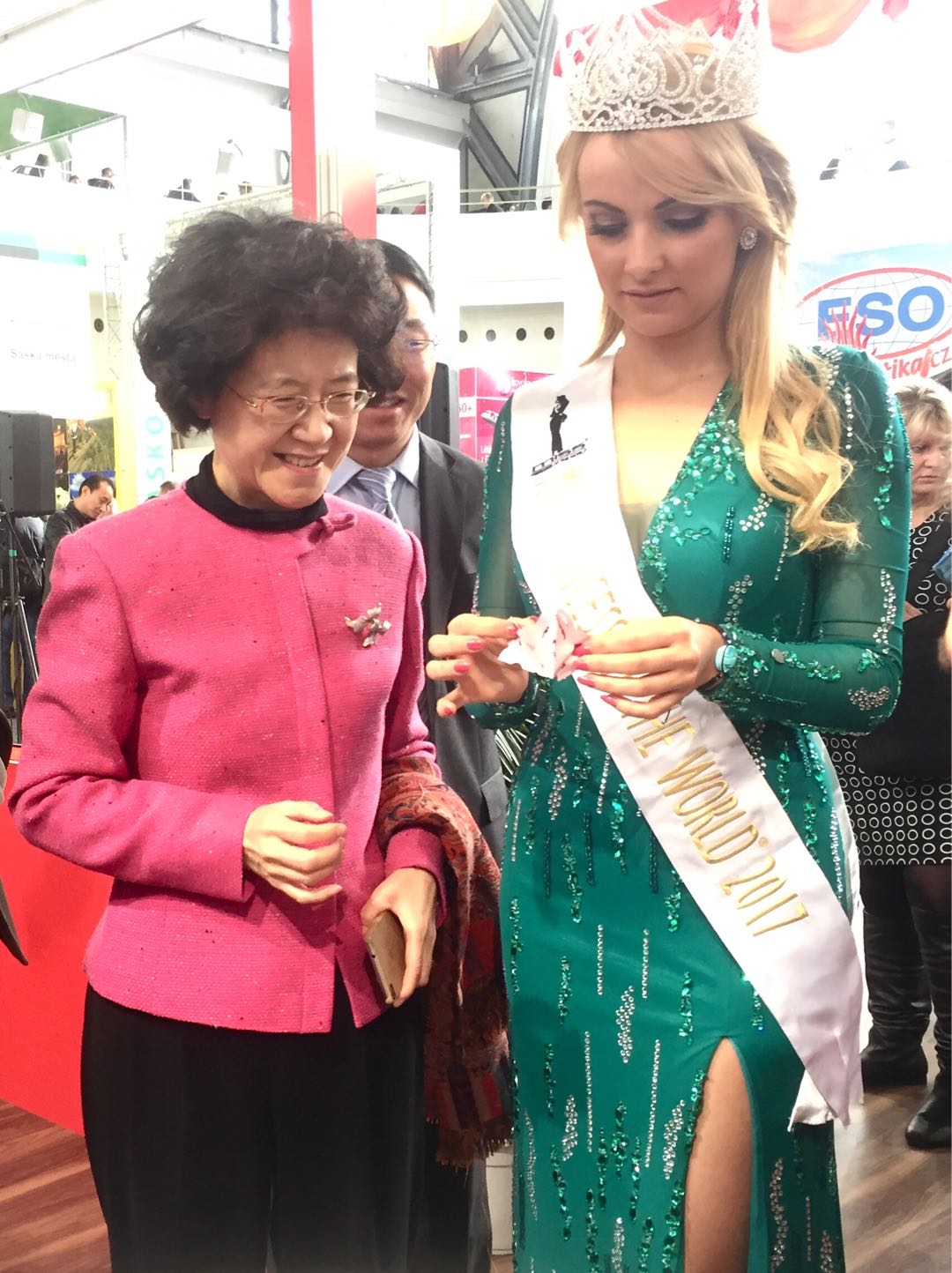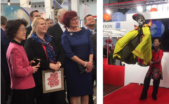 愛濤文化集團“歡樂春節·精彩江蘇”文化藝術展演團向與會賓客呈獻了精妙的江蘇非遺剪紙技藝、揚州木偶《變臉》絕活和高難度的嗩吶演奏《百鳥朝鳳》等節目,精彩的表演使中國展位在交易會上倍受矚目,前來參觀的捷克地方發展部部長多斯塔洛娃女士、捷克世界小姐代表等嘉賓對江蘇藝術展演展示駐足觀看,嘖嘖稱贊,同時前來視察的駐捷大使馬克卿女士、江蘇省政府及江蘇省文化廳領導對愛濤文化集團“歡樂春節·精彩江蘇”文藝演出和非遺展示予以高度評價和充分肯定,中國展臺還被主辦方授予“最佳展臺獎”和“最佳組織獎”。展演展示活動為深化捷中旅游領域交流與合作,共樹“一帶一路”旅游合作典范推波助瀾。