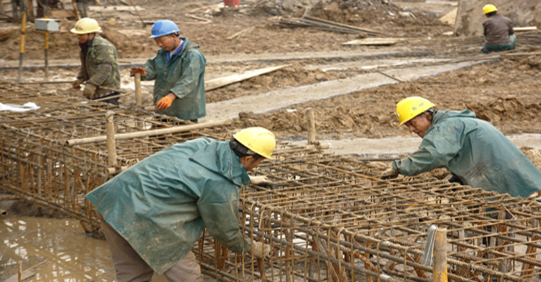 愛濤文化創(chuàng)意中心項目部對進度的高度重視,只要有工作面,無論雨下多大,現(xiàn)場都不停工,工人們冒著大雨,穿著雨衣雨褲綁扎鋼筋、支模板等,在這種條件下硬是澆筑了第一道支撐的70%工作量。