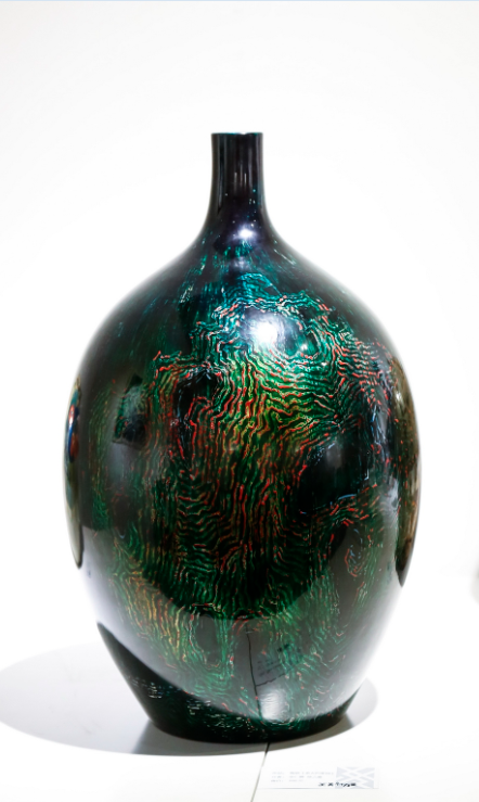 大漆作品《藏石》,以宜興紫砂為胎體,結合傳統大漆工藝,經由作者當代審美設計,使兩種古老技藝重煥生機。作品富有創意地將紫砂與大漆裝飾相結合,通體幽靜,設計巧妙,制作精良,是不可多得的精品。